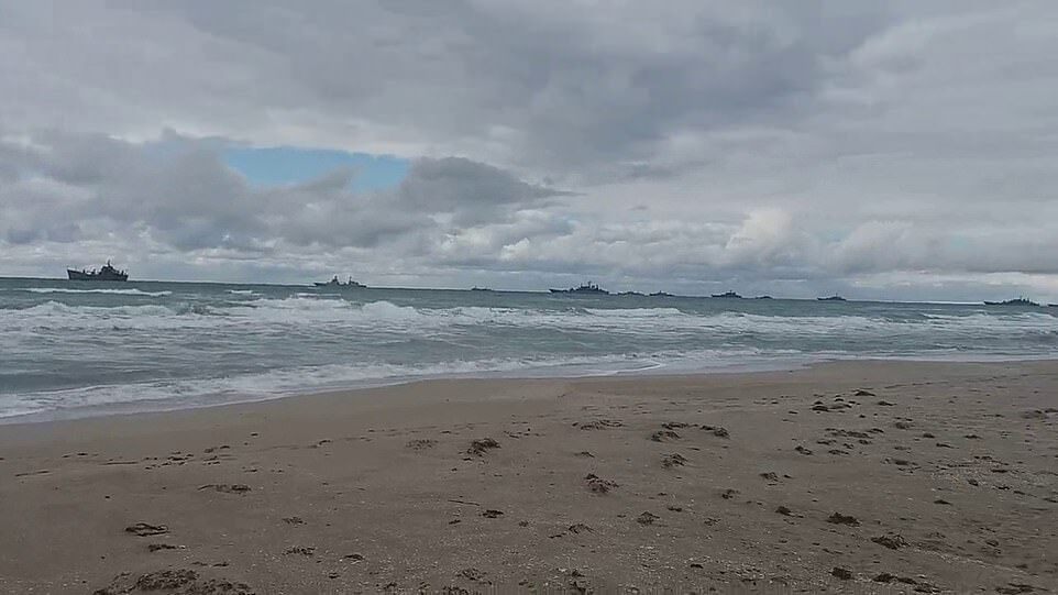 A force of around a dozen Russian vessels including landing ships is massing off the coast of Crimea today, with experts saying an assault on Odessa could come later in the day