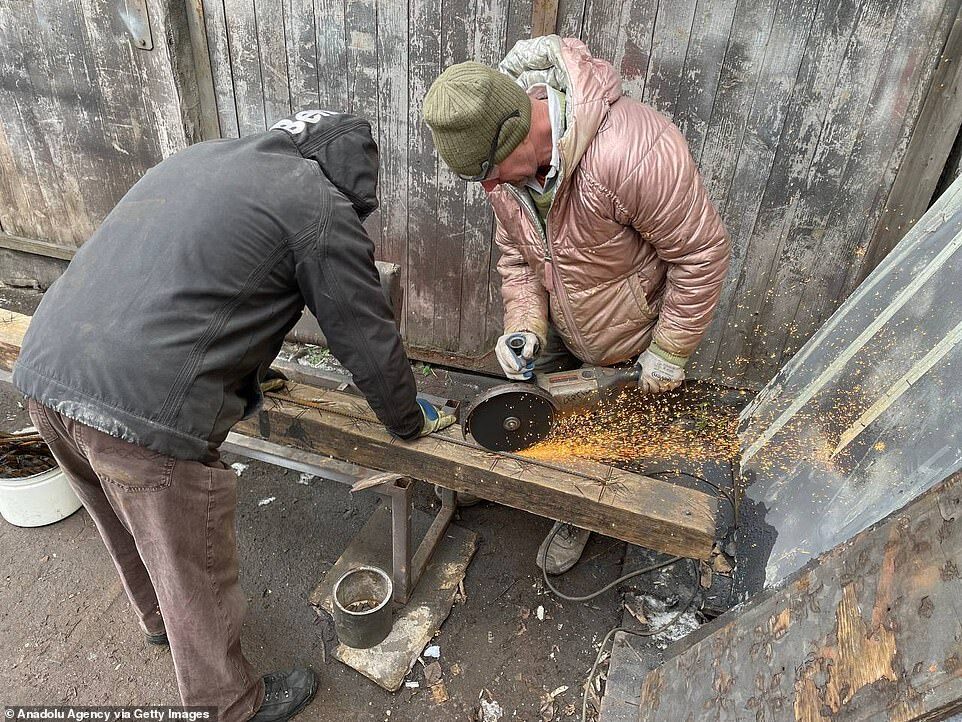 Metal workers in Lviv, western Ukraine, help to make barricades that can be used to defend the city in case Russia attacks
