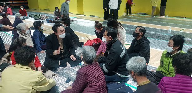 尹, 유세 마치자마자 ‘울진 산불 이재민’에 달려갔다
