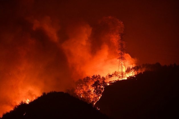 한편 불길은 오후 5시쯤 강원도 삼척시 원덕읍 월천리 마을까지 번져 주민들이 대피했다. 산불은 호산리에 위치한 LNG(액화천연가스) 생산기지 반경 600m까지 번진 상태다. 이곳에선 수입 LNG를 보관한 뒤 강원·영남 지역에 공급하고 있으며 LNG 보관탱크 12개가 설치돼 있다.
