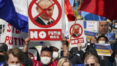 5일(현지시간) 우크라이나 남부에 있는 헤르손시(市)에서 시민 2만여명이 중앙 광장에 나와 러시아군을 향해 시위를 벌였다고 영국 텔레그래프가 전했다. 한 남성은 도로를 지나가고 있던 러시아군의 장갑차 위에 뛰어 올라타 우크라이나 국기를 흔들었다. 우크라이나인들은 "우리는 두렵지 않다. 헤르손은 우크라이나다"라고 외쳤다.