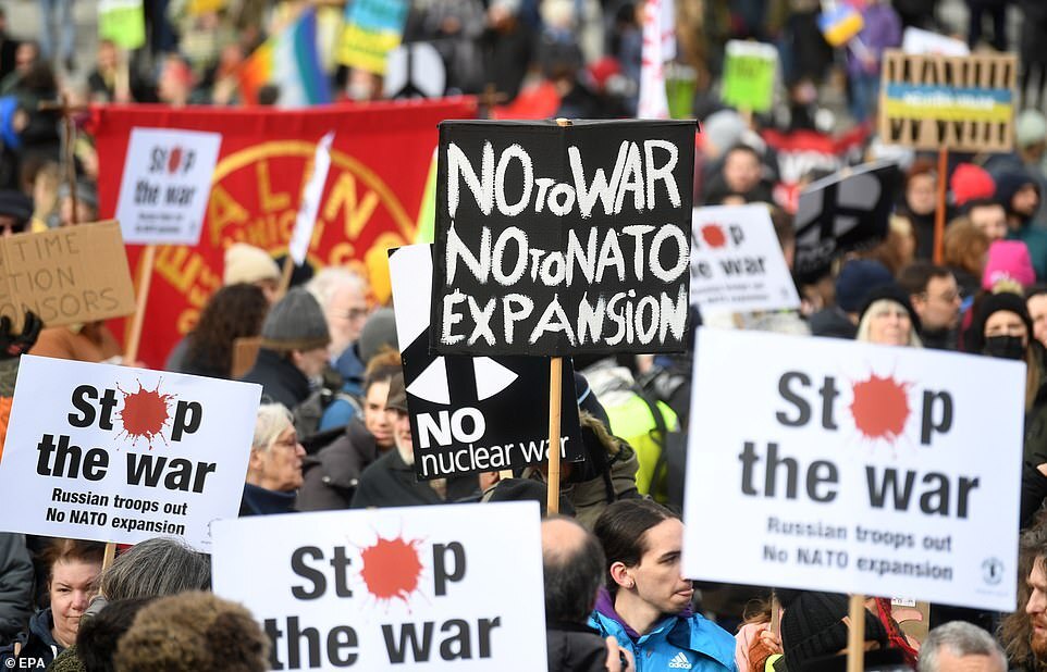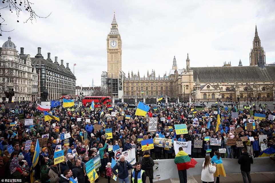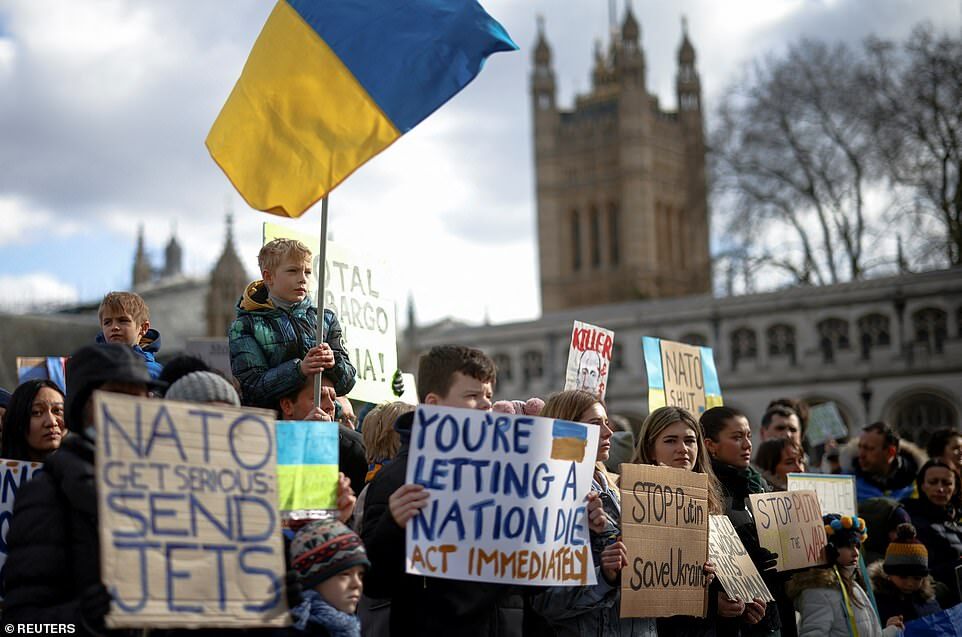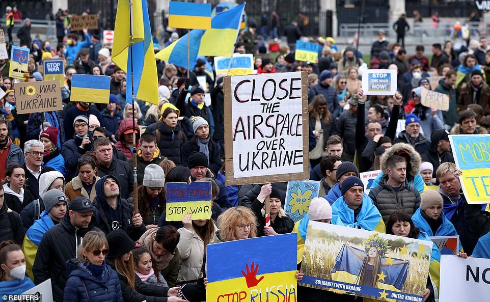Some demonstrators demanded a 'no-fly zone' be implemented over Ukraine, despite fears this could escalate the conflict further