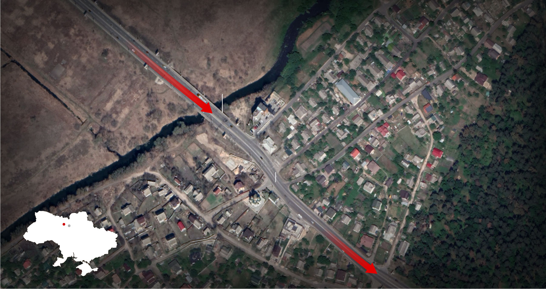 When the mortar shells hit, Ukrainian forces were engaged in clashes nearby, but not where the civilians were moving along the street on the Kyiv side of the bridge. Outgoing mortar rounds could be heard from a Ukrainian position about 200 yards away, far enough from the bridge to suggest that the Russians were either purposefully targeting the evacuation route or disregarding the risk of civilian casualties.