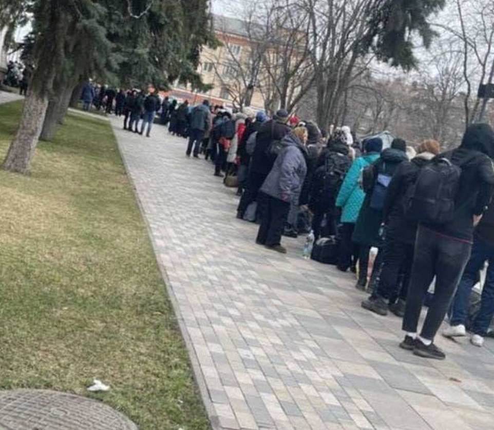 People line up to be drafted into the army in Lviv, Ukraine, March 5, 2022