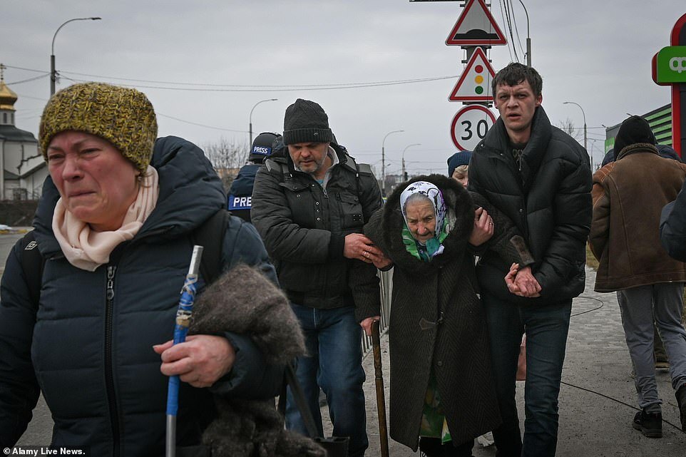 Hundreds of civilians have today been fleeing the city of Irpin, to the west of Kyiv, after it came under heavy attack by Russian forces in recent days while Putin's men try to encircle the capital