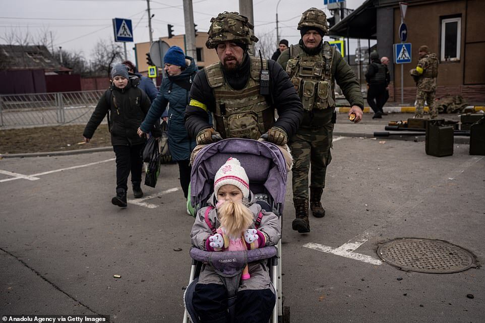 The stark warning comes after horrifying images showed four members of the same family, including two children, lying motionless on a pavement alongside their suitcases after they tried to flee Irpin, a town 12 miles from Kyiv, on Sunday.
