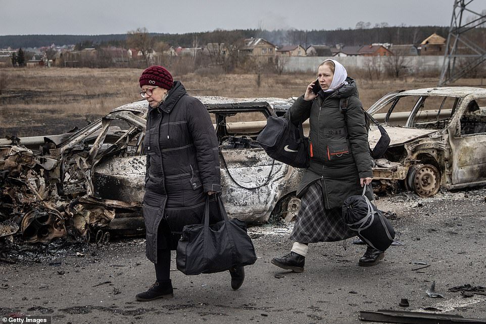 - Hundreds were pictured trying to flee Irpin, to the west of Kyiv, after days of Russian attacks on the city