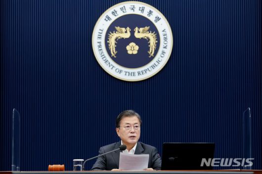 [서울=뉴시스박영태 기자 = 문재인 대통령이 1일 오전 청와대 여민관에서 열린 영상 국무회의에 참석해 발언하고 있다. 2020.12.01