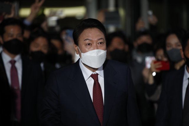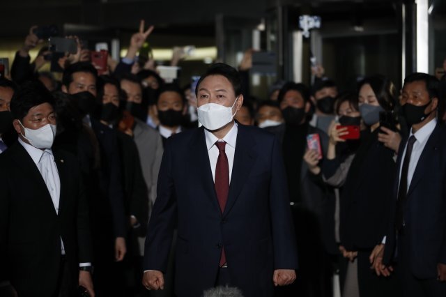 윤 후보는 이후 준비된 차량을 타고 국민의힘 선거상황실로 이동했다.