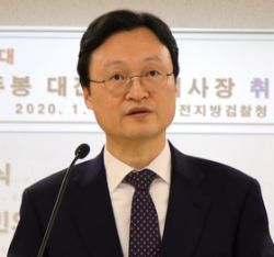 이두봉 대전지검장이 지난 1월 13일 대전 서구 대전고등·지방검찰청사에서 열린 취임식에서 취임사를 하고 있다. 연합뉴스