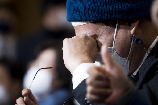 송영길 더불어민주당 대표가 20대 대통령 선거일인 9일 오후 서울 여의도 국회 의원회관 대회의실에 마련된 개표 상황실에서 출구조사 결과를 보며 눈물을 닦고 있다. / 국회사진기자단