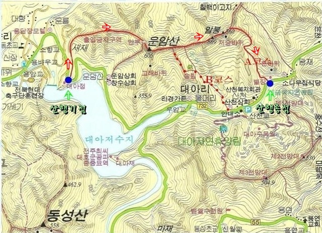 대전통영고속도로금산IC-금산-17번국도-운주-고산삼거리-(732번도로)대아댐-무릉도원