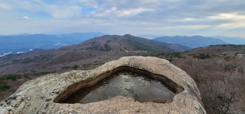 우뚝 솟은 금정산 바위 꼭대기 위에 고인 웅덩이가 마르지 않는 이유는?
