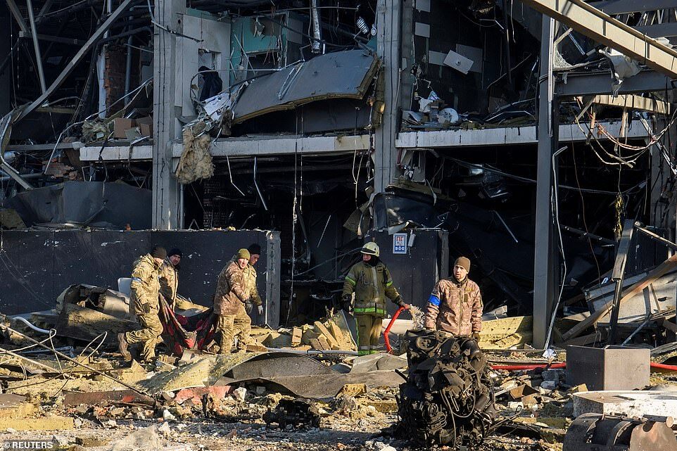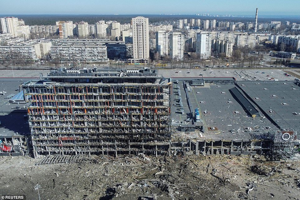 Russia kept up its bombardment of other Ukrainian cities on Monday, hitting a shopping mall and several apartments in the capital Kyiv in the early hours - reducing the former to rubble. Bombings in the surrounded city of Sumy also hit an ammonia plant, sparking an evacuation.