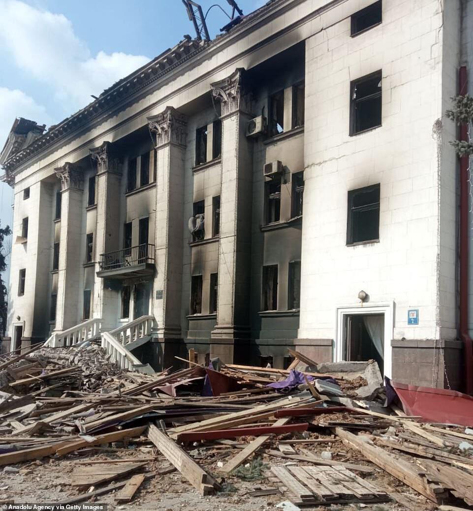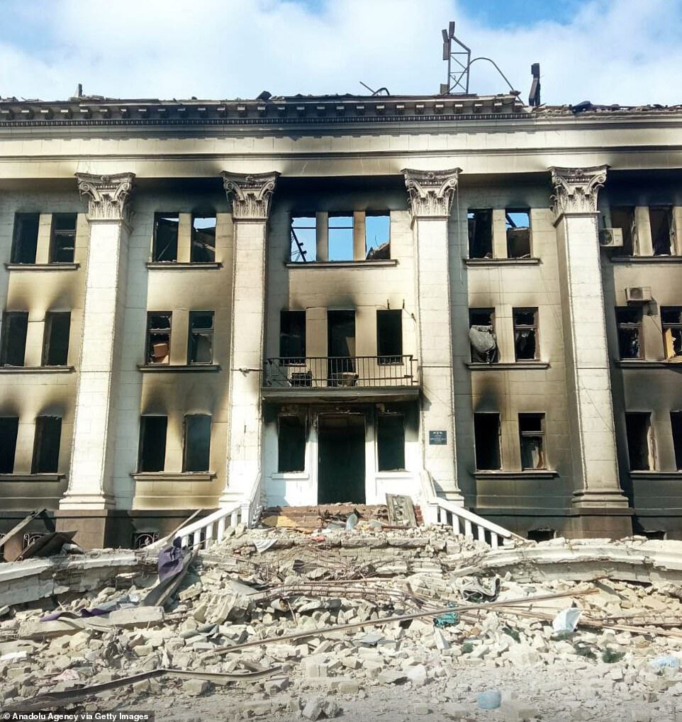 Up to 1,200 people are thought to have been using the theatre as a shelter when Russian bombs struck and completely destroyed it - despite signs saying 'children' being clearly visible outside