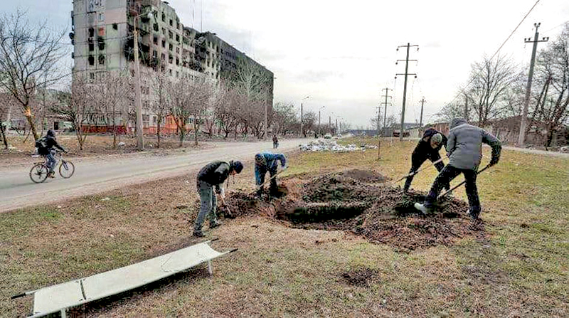 At least 2,300 people have died in Mariupol, some buried in mass graves, authorities have said.