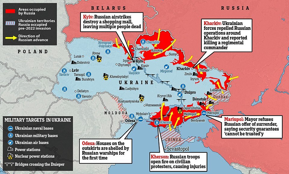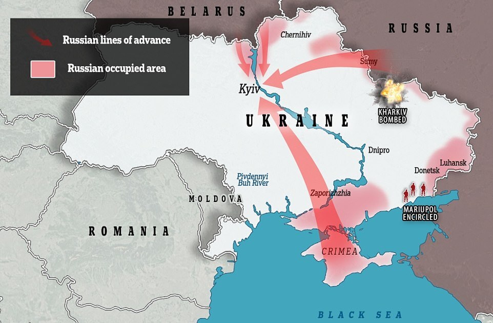 It comes as Ukraine claims that its forces have repelled Russian troops from a strategic suburb of Kyiv, forcing Mosco to call up reinforcements to help them take Makariv, about 37 miles from the capital.