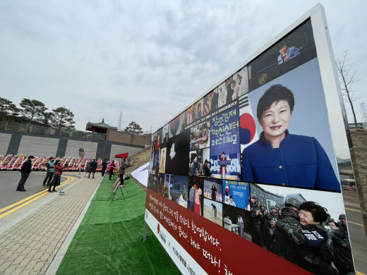 23일 박근혜 전 대통령의 대구 달성군 유가읍 쌍계리 사저 주변에 박 전 대통령을 환영하는 사진 등이 설치돼 있다. (사진=연합뉴스)