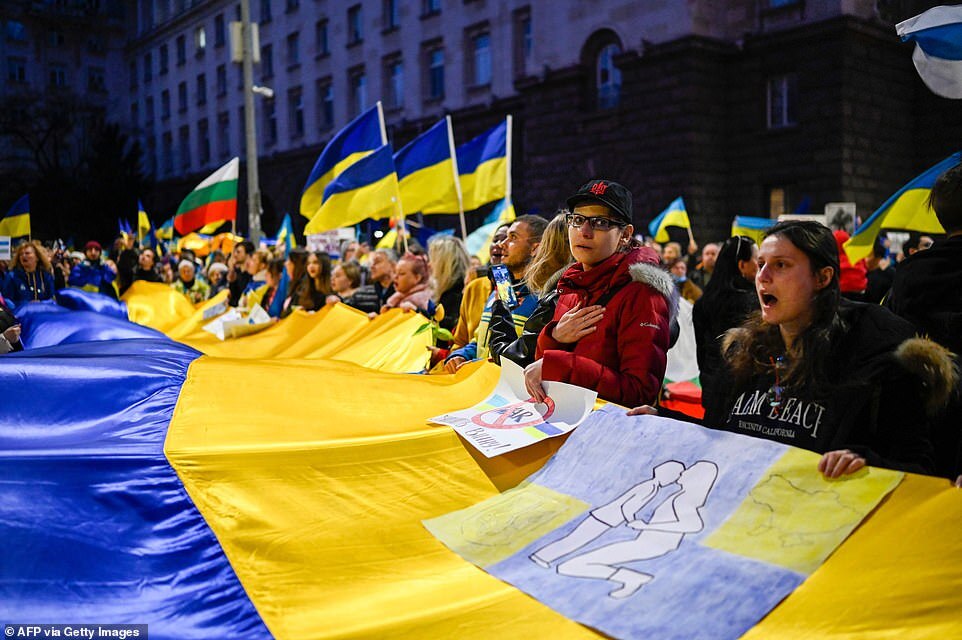 Waving Ukrainian and European flags, protesters chanted 'Stop the war,' 'Stop Putin' and 'Freedom for democratic Ukraine.' The organisers of the event said that it was time for Bulgaria to come out in large numbers in support of a sovereign Ukraine.