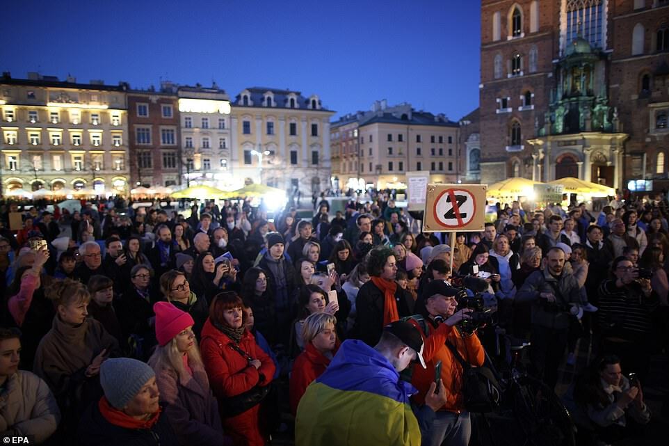 KRAKOW: People gather in Krakow's main square to protest against Russian attacks on Ukraine, on March 24, 2022