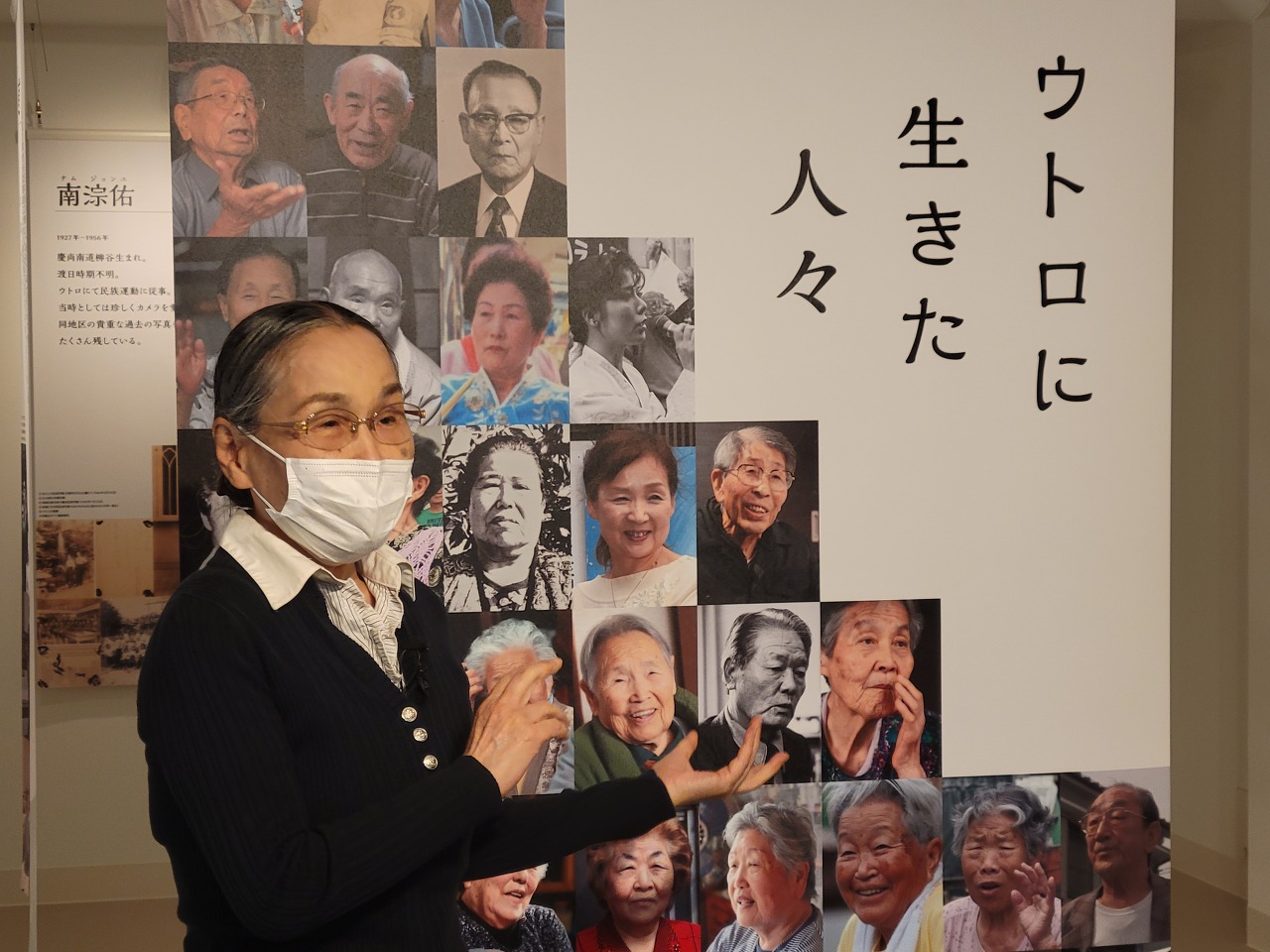우토로마을 조선인들의 얼굴 옆에 ‘우토로에 살았던 사람들(ウトロに生きた人々)’이라고 쓰여 있다
