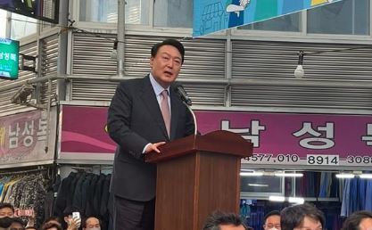 윤 당선인은 이날 오후 강릉 중앙시장에서 상인들에게 인사했다. 윤 당선인은 연설에서 “강릉 시민 여러분, 여러분의 적극적인 지지와 열정적인 성원으로 강릉의 아들, 강릉의 외손인 제가 대통령에 당선이 돼 취임을 며칠 앞두고 여러분들을 찾아뵌다”고 말했다.