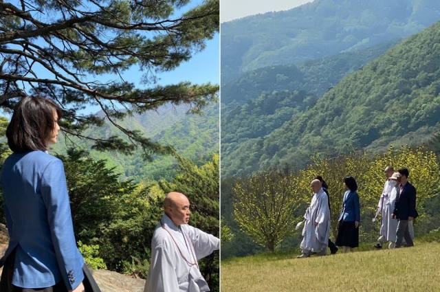 김 여사가 승려들과 함께 구인사 안을 도보로 이동하면서 곳곳을 둘러보며 자연스레 대화를 나눴다.