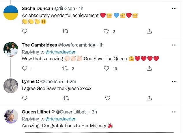 'Amazing! Congratulations to Her Majesty,' one wrote, while another described it as 'an absolutely wonderful achievement'.