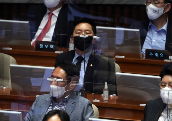 김기현 국민의힘 의원이 제397회국회(임시회) 제3차 본회의가 열린 20일 오후 서울 여의도 국회 본회의장에서 자신에 대한 징계안 상정을 지켜보고 있다. 공동취재