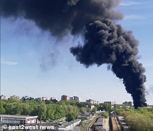 May 1: videos documented fuel-oil tanks burning in Mytishchi, a fuel depot only thirty minutes from the Kremlin