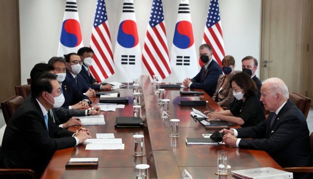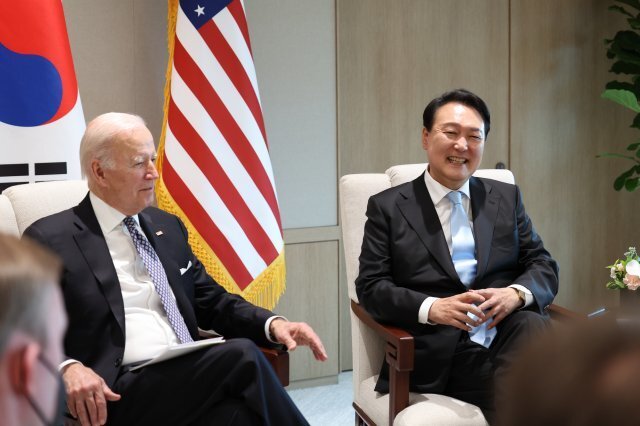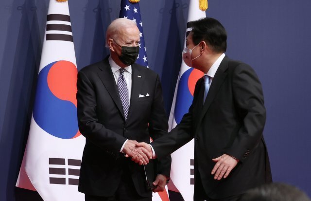 윤 대통령은 공동 기자회견에서 “두 정상은 북한의 완전한 비핵화라는 공동의 목표를 재확인했다”며 “안보는 결코 타협할 수 없다는 공동의 인식 아래 강력한 대북 억지력이 무엇보다도 중요하다는 데 공감했다”고 말했다. 바이든 대통령도 “오늘 저는 윤 대통령과 굉장히 우리의 긴밀한 관계를 강화하고, 지역의 안보 과제를 함께 해결해 나가기로 했다”면서 “여기에는 북한의 위협에 대응하기 위해서 우리의 억제 태세를 더욱 강화하는 것을 포함하고, 그리고 한반도의 완전한 비핵화를 위해서 노력하는 것도 포함하고 있다”고 말했다.