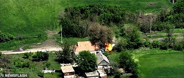 But the garden foliage failed to help. Ukrainian strikes soon obliterated the invading tanks, with footage showing them engulfed in flames.