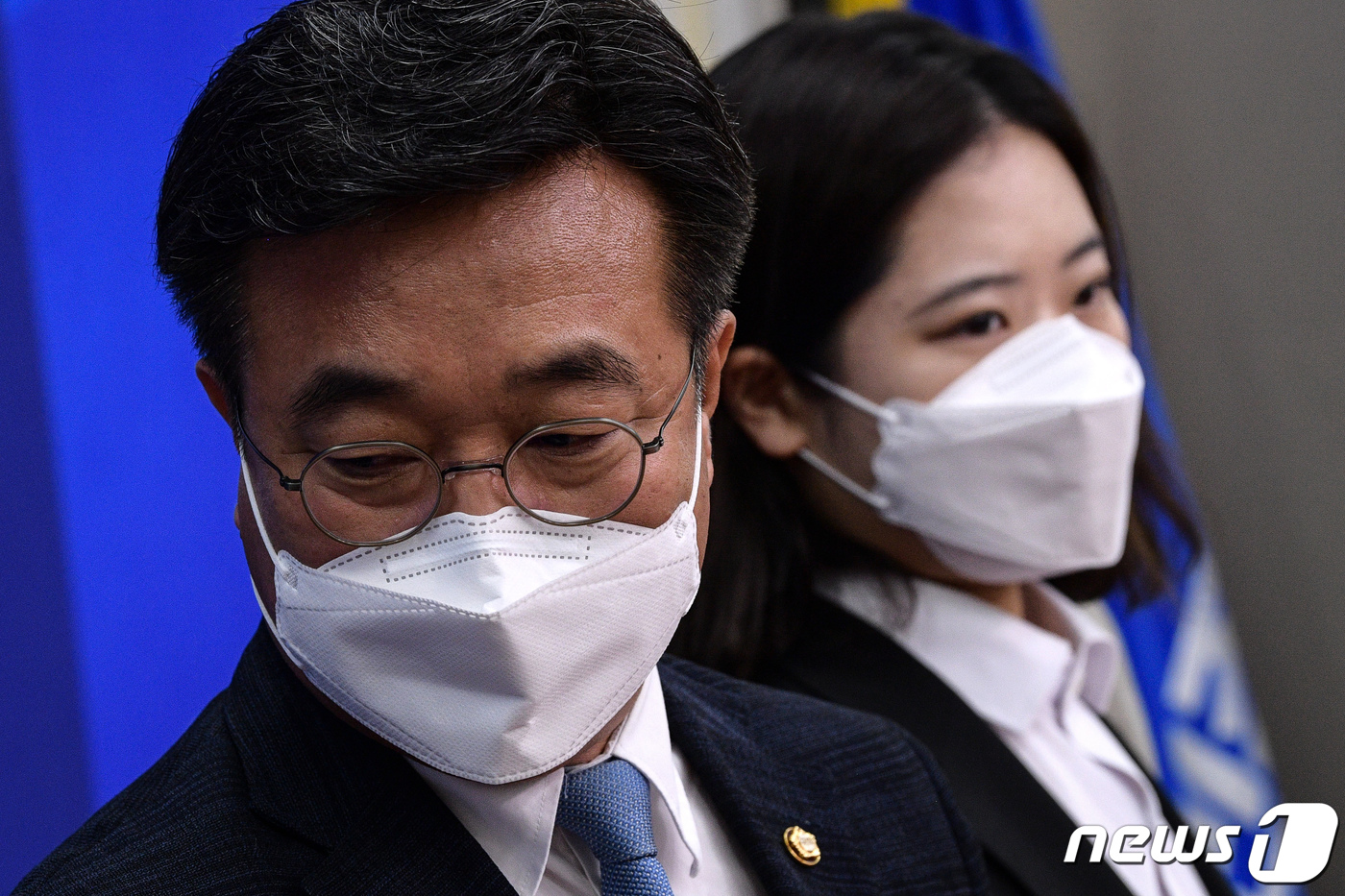 윤호중, 박지현 더불어민주당 공동비상대책위원장이 2일 오전 서울 여의도 국회 당대표실에서 "6·1 지방선거 패배의 책임을 지고 총사퇴하기로 했다"고 밝히고 있다. (공동취재) 2022.6.2/뉴스1 © News1 유승관 기자
