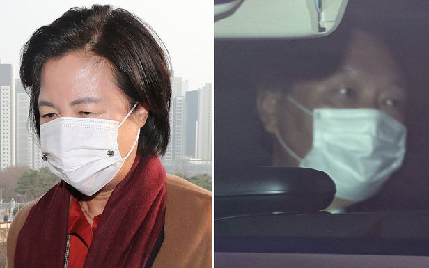 추미애 법무부 장관(왼쪽)이 11일 오후 정부과천청사 법무부로 들어서고 있다. 이날 오전 윤석열 검찰총장이 관용차량을 타고 서울 서초구 대검찰청으로 출근하고 있다. /연합뉴스