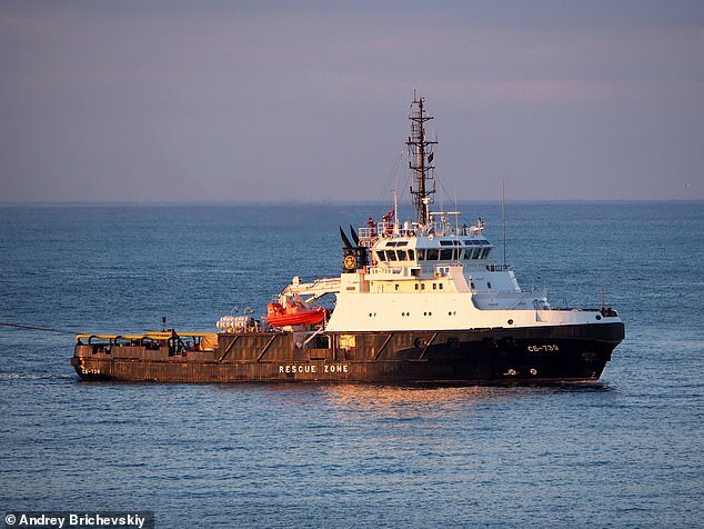 Its Tor anti air missile system failed to halt the strike but the tug remained afloat and was being evacuated for repairs after sustaining significant damage. Pictured: The Vasily Bekh in happier times