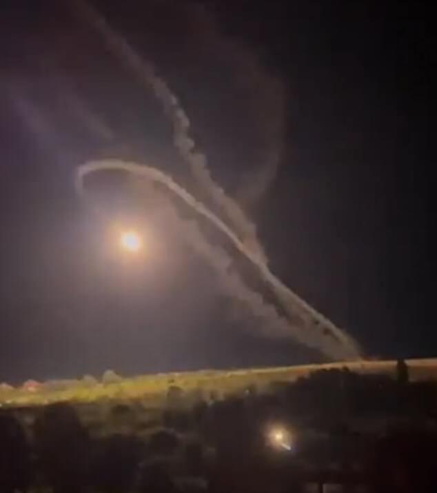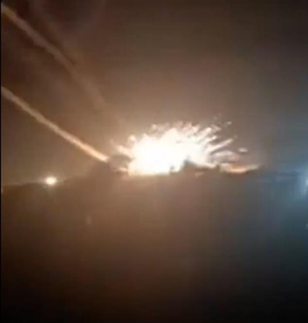 The unverified video shows a volley of anti-aircraft missiles being fired into the night sky
