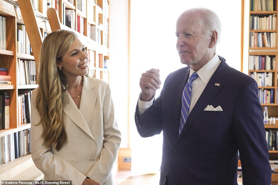 Carrie Johnson with The President of the United States of America, Jo Biden at the G7 leaders on the first day of the G7 Leaders' Summit 2022 in Germany