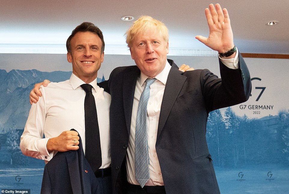 At a summit in Germany, Emmanuel Macron (pictured close to Boris Johnson), who had been seen by No 10 as wavering, yesterday said he was committed for the long haul after Boris Johnson warned against encouraging Volodymyr Zelensky to accept a peace deal