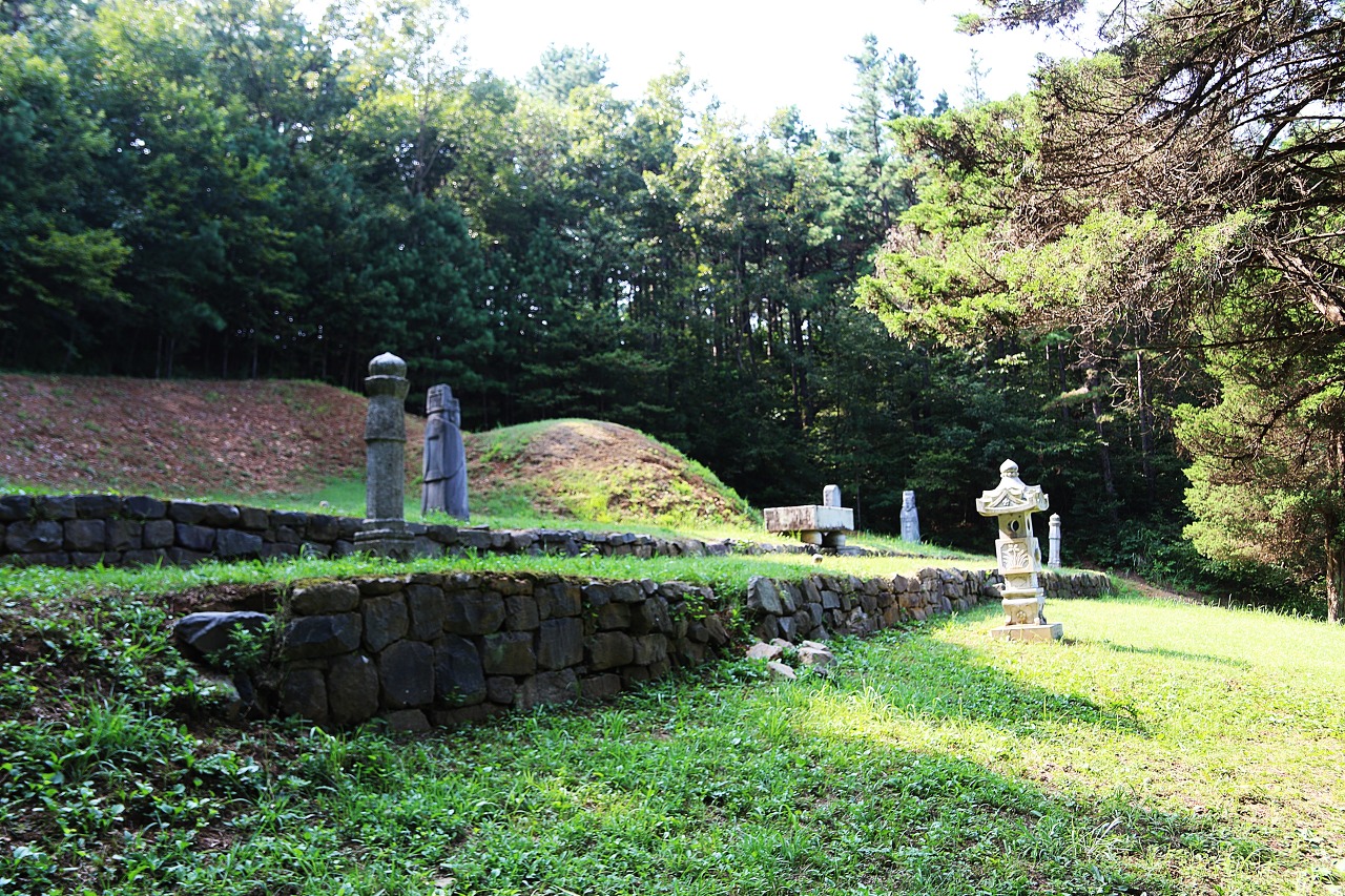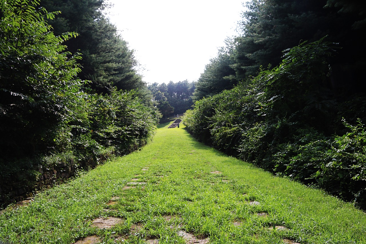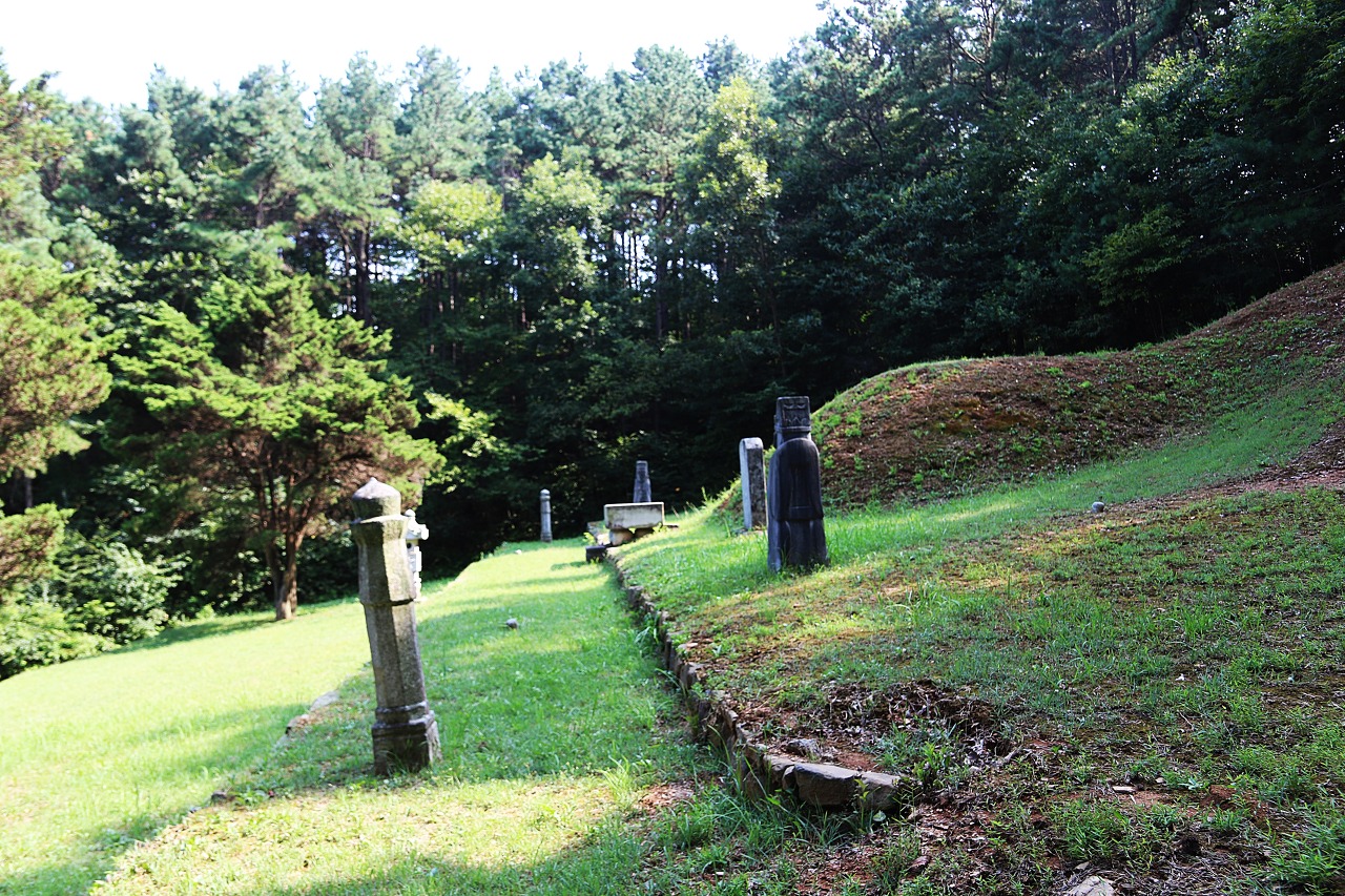 묘역 양옆에는 잣나무가 빼곡히 서있다