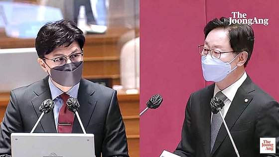 ▶한 장관=“의원님께서 근무하셨던 민정수석실에서는 사람들 명부를 전부 대놓고 검증했나. 인사검증이라는 것은 대통령의 인사권한을 보조하는 것이기 때문에 의뢰를 받아서 1차 검증을 하는 것이고 거기에 법적인 문제가 전혀 없다고 생각한다. 이 업무는 새로 생긴 업무가 아니라 과거 민정수석실에서 계속 해오던 업무다. 제가 이 일을 하는 것이 잘못이라면 과거 민정수석실에서 했던 인사검증 업무는 모두 위법이다.”