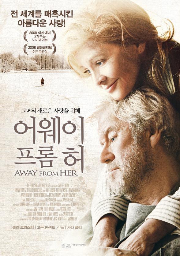 2006년 캐나다 출신의 여자 감독 '사라 폴리'(Sara Polley)가 만들어서 여주인공 '줄리 크리스티'에게 '골든그로브' 여우주연상을 비롯해 수많은 상을 받게 해 준 "어웨이 프롬 허" (Away from her)는 감동과 아픔, 슬픔을 동시에 느끼게 해 준 영화를 본 관객들에게는 오랫동안 잊히지 않을 영화다.