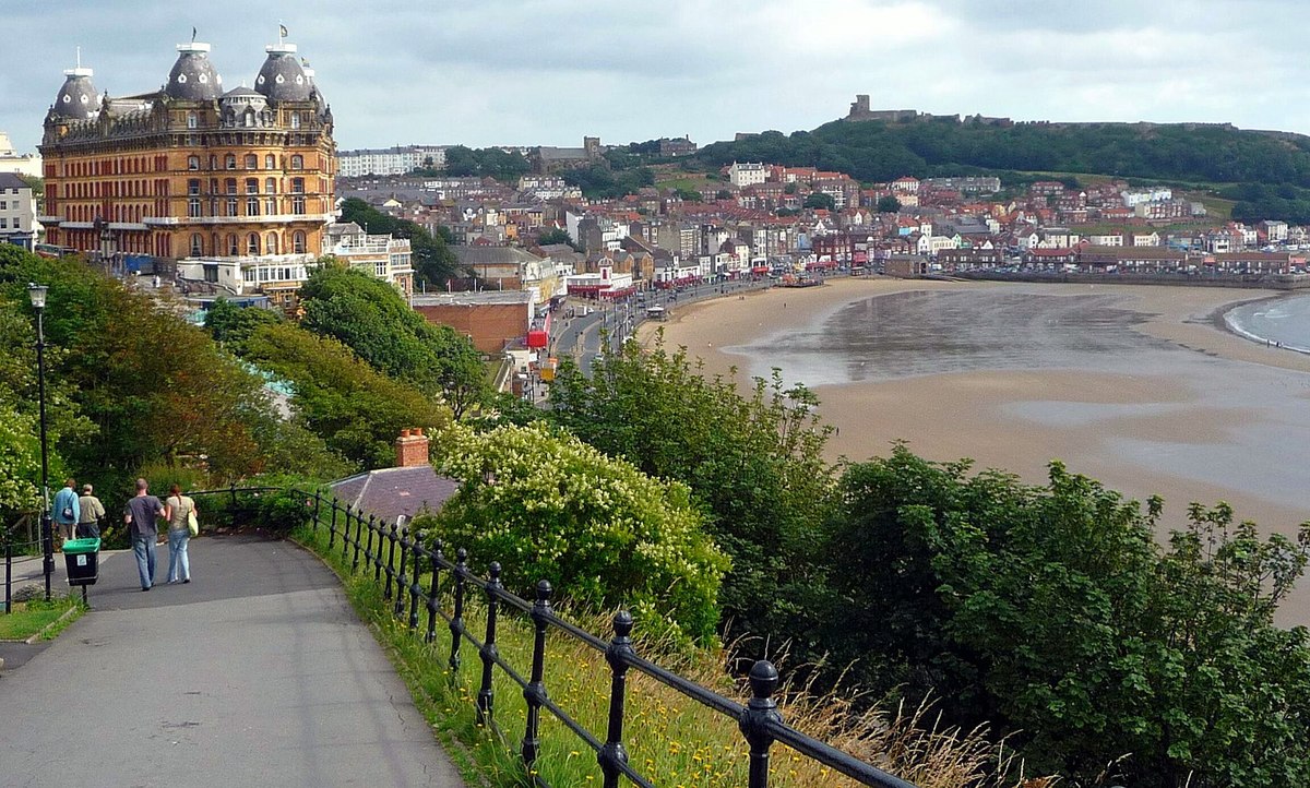 a town on the coast of North Yorkshire, England. It was popular in the past as a spa town (= one where there are springs of mineral water considered to be healthy to drink) and is now known for its parks, theatres and beaches.