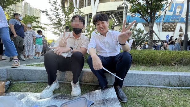 이준석 전 대표는 가처분 신청 인용 다음날인 27일 대구 북구 DGB대구은행파크 중앙광장에서 열린 ‘대구북구떡볶이페스티벌’에 깜짝 방문해 시민들을 만났다.