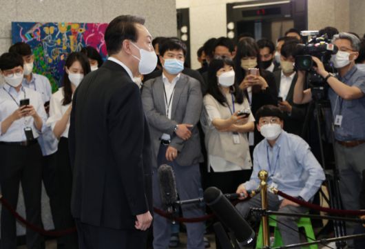 윤 대통령은 추석 연휴 전 비서관급 참모진 중폭 개편에 나선 이유를 묻자 “대통령실이라고 하는 것은 국민에게 가장 헌신적이고 가장 유능한 집단이 돼야 국민에게 제대로 봉사할 수 있다”며 “가장 중요한 기관이기 때문에 늘 국가에 헌신적 자세, 업무 역량이 최고도로 유지돼야 한다”고 답했다.