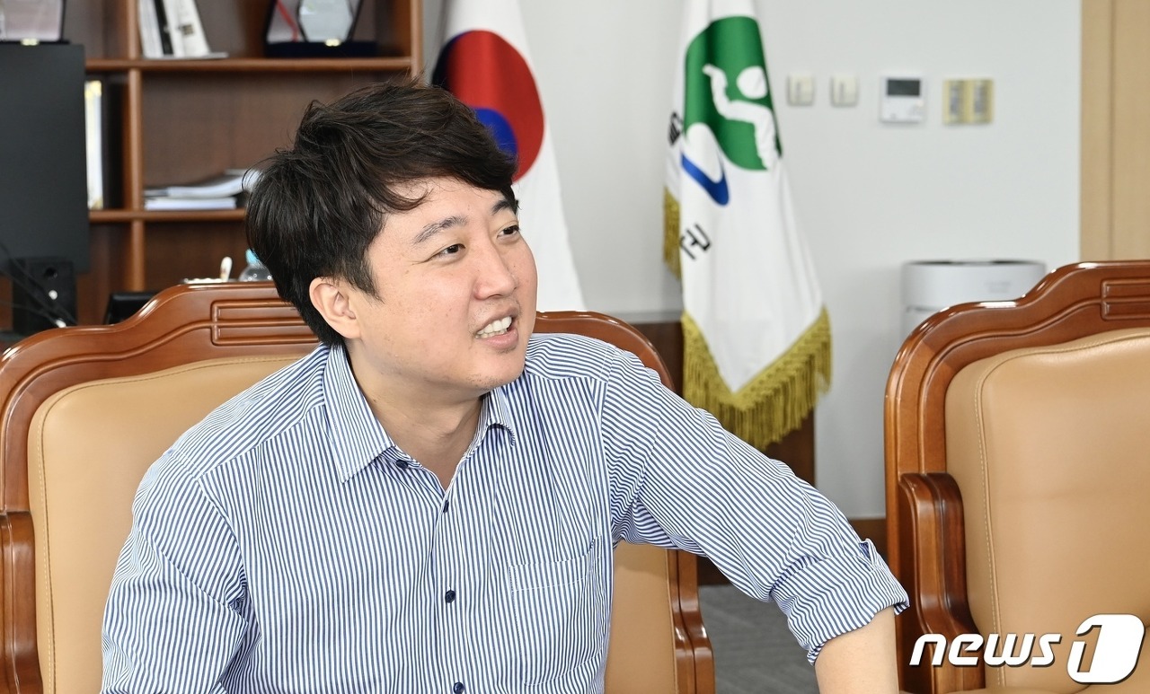 이준석 국민의힘 전 대표가 지난 29일 오전 대구 달성군의회를 방문해 최재훈 달성군수와 면담하고 있다. (달성군 제공) ⓒ News1 공정식 기자