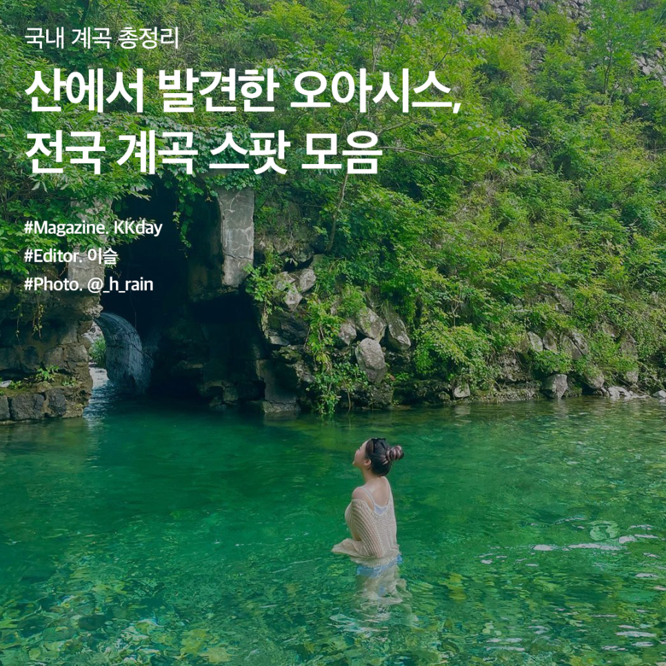 처서는 지났지만 아직도 옷장은 여름에 머물러있다. 8월의 끝이란 그렇다. 달력은 가을을 가리키지만 이상하게도 계속 여름인 날들. 오늘은 그런 늦여름에 방문하기 좋은 전국 계곡 스팟을 모았다.