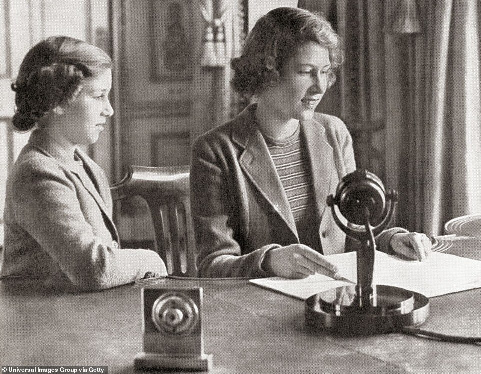 Princess Margaret, left, and Princess Elizabeth, future Queen Elizabeth II, right, broadcasting to the children of the empire, 13th October, 1940, to raise spirits during the war