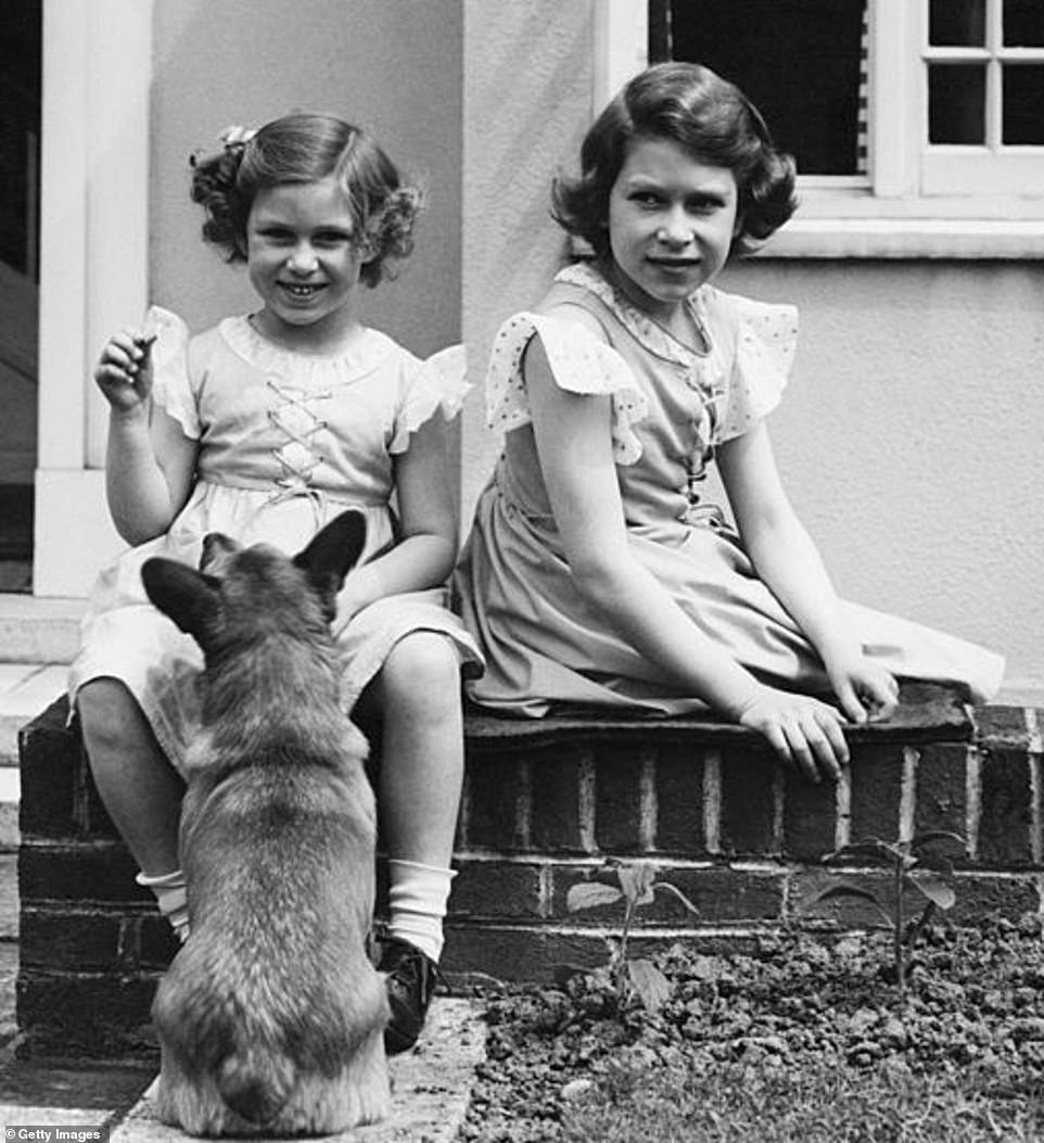 Animals played a key part in the young princesses upbringing. Princess Elizabeth and Princess Margaret play with a corgi outside the Welsh House at the Royal Lodge, Windsor, June 1936