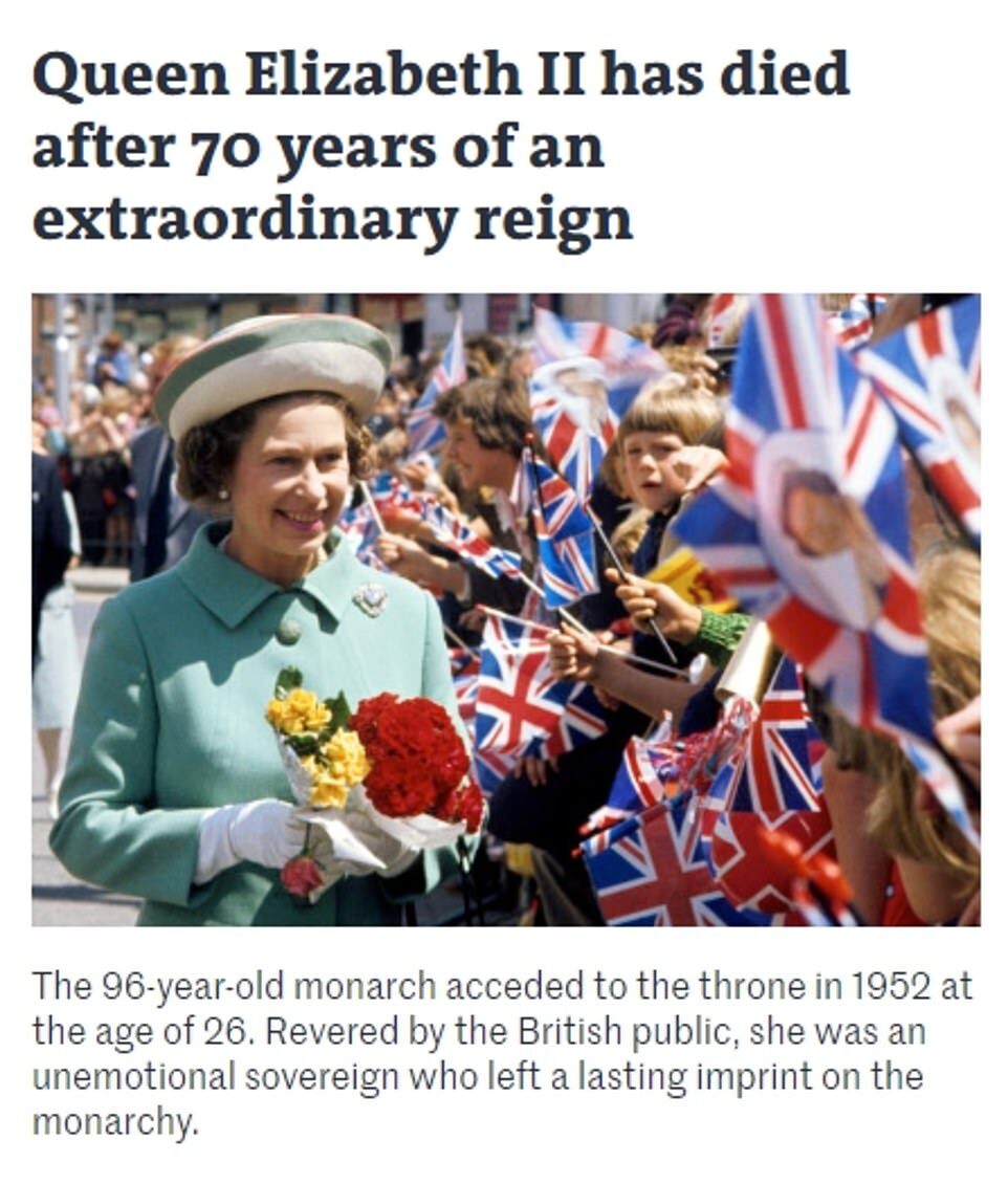 As her image dominated newspapers worldwide, many outlets hailed how her 70-year reign makes her Britain's longest-reigning monarch.