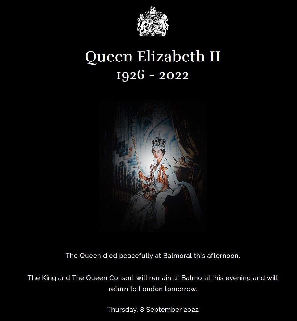 Her Majesty the Queen - Britain's longest-reigning monarch - has died peacefully at Balmoral aged 96. Her son Charles, is now king. He will remain at Balmoral tonight before returning to London with the Queen Consort, Camilla